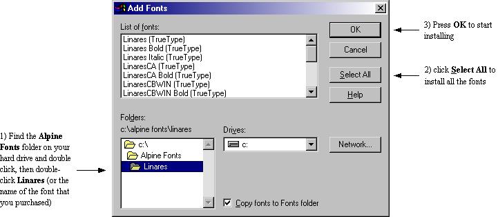 Alpine Fonts Help Topic: Installing the fonts on to your computer (Windows)